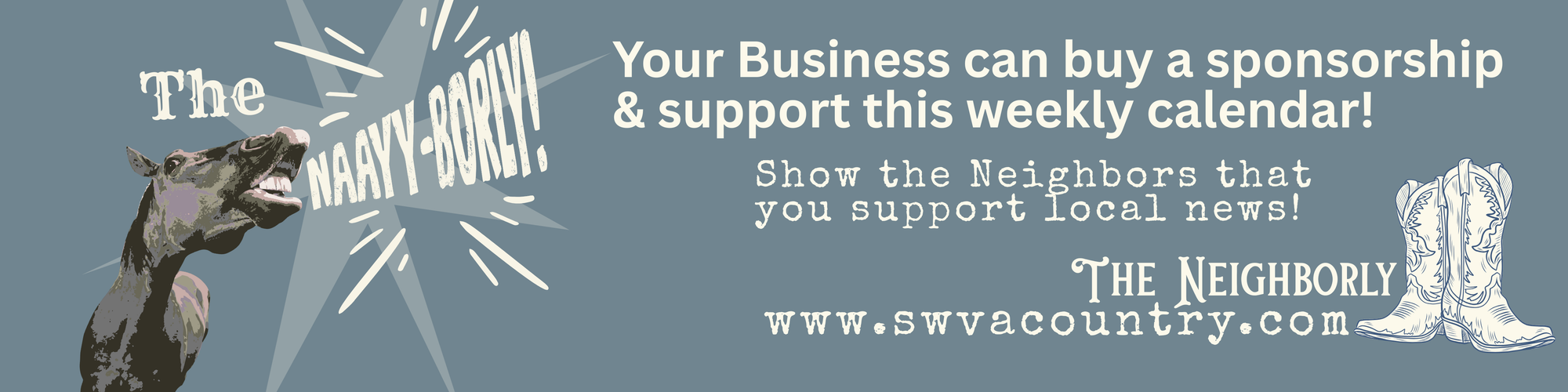 HAVE AN EVENT OR NOTICE FOR THE NEIGHBORLY? SEND US AN EMAIL hello@swvacountry.com AND WE'LL ADD YOU TO THE PAGE!