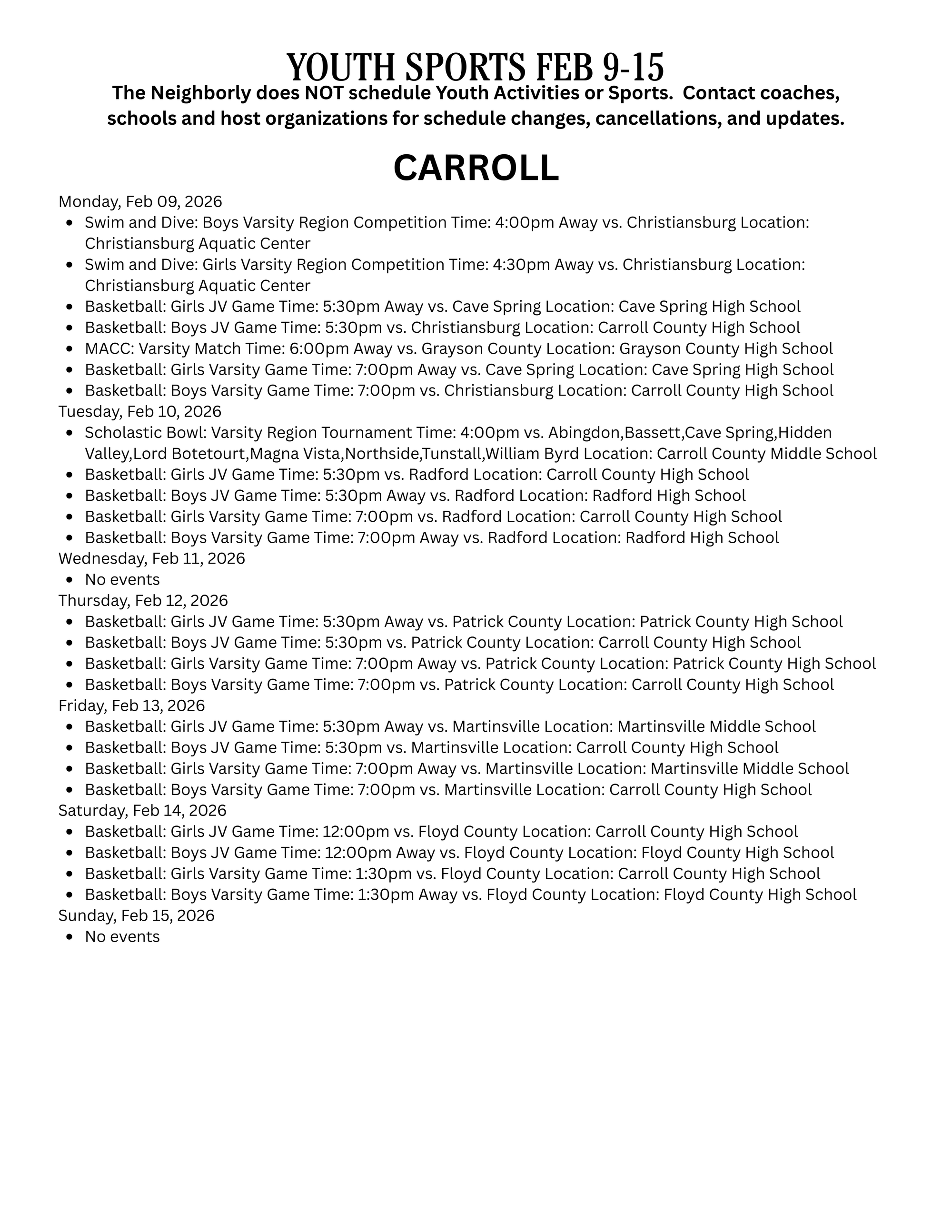 Check with schools, coaches, host organizations for any schedule changes or game updates!